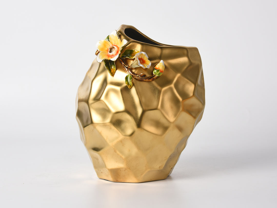 Можете да бидете сигурни дека ќе купите приспособен декор за керамичка вазна за биро Rundecor апстрактна златна маса. со конкурентни цени и сигурни услуги за испорака, очекуваме да станеме ваш долгорочен партнер во Кина. НаАпстрактна златна декорација за керамичка вазна за биро shape, made of high-temperature ceramics with an opening shaped like a fish's mouth, is novel and unique. Polygonal surfaces of various sizes, sags, and crest splicing designs are hand-made. It may seem irregular, but it is a proof of inventiveness, it also tests the workmanship of the craftsman, and shows the artistic value of the work. The gold-plating process on the surface, the bright and sparkling color, the extraordinary bearing, the pomegranate blossoms, hand-painted in enamel at the mouth of the bottle, are even more refreshing. Suitable for luxurious, post-modern and minimalist interior decoration. In the pursuit of outstanding new and younger generations, this is the best fit.