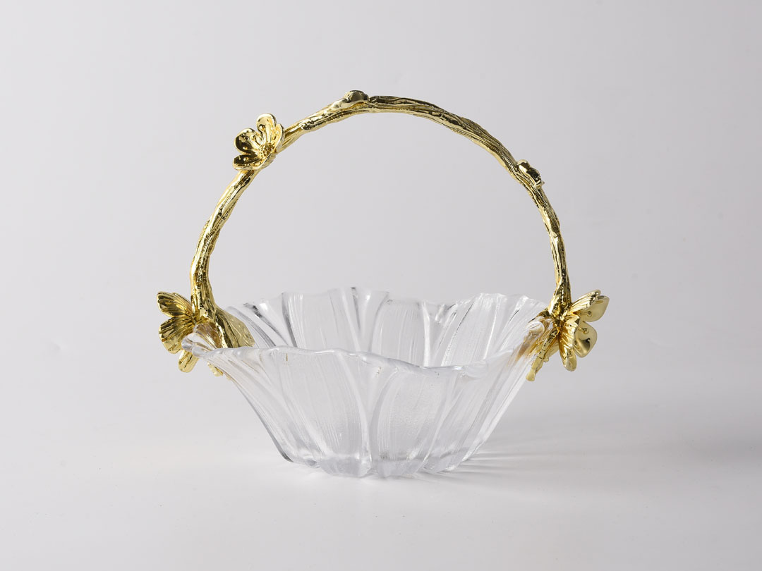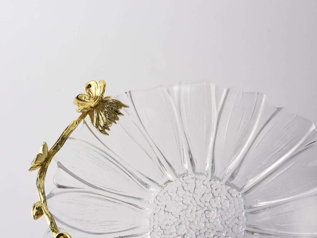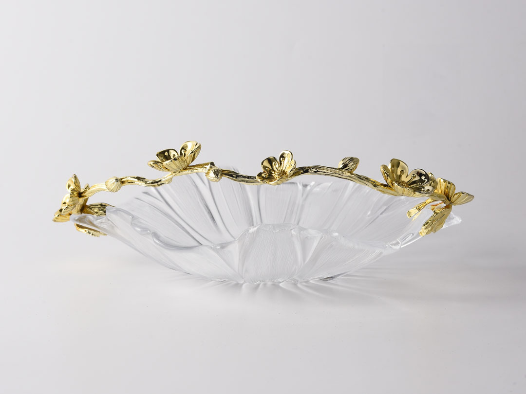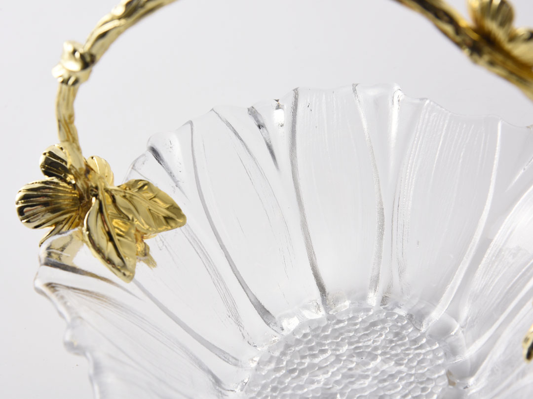 | Име | Стаклен сад за овошје со метални златни цветови | Тип | чинија со овошје Домашен декор |