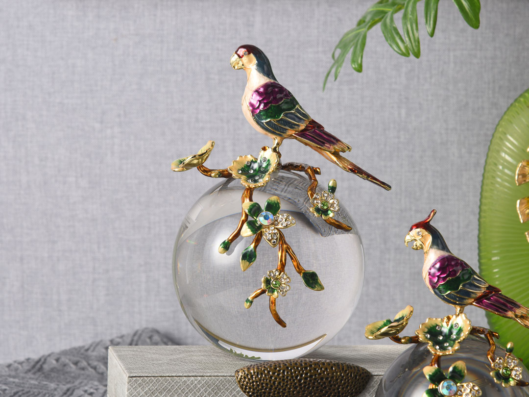 | Име | Папагал на декор скулптура со чиста кристална сфера | Тип | Животинска скулптура Домашен декор |